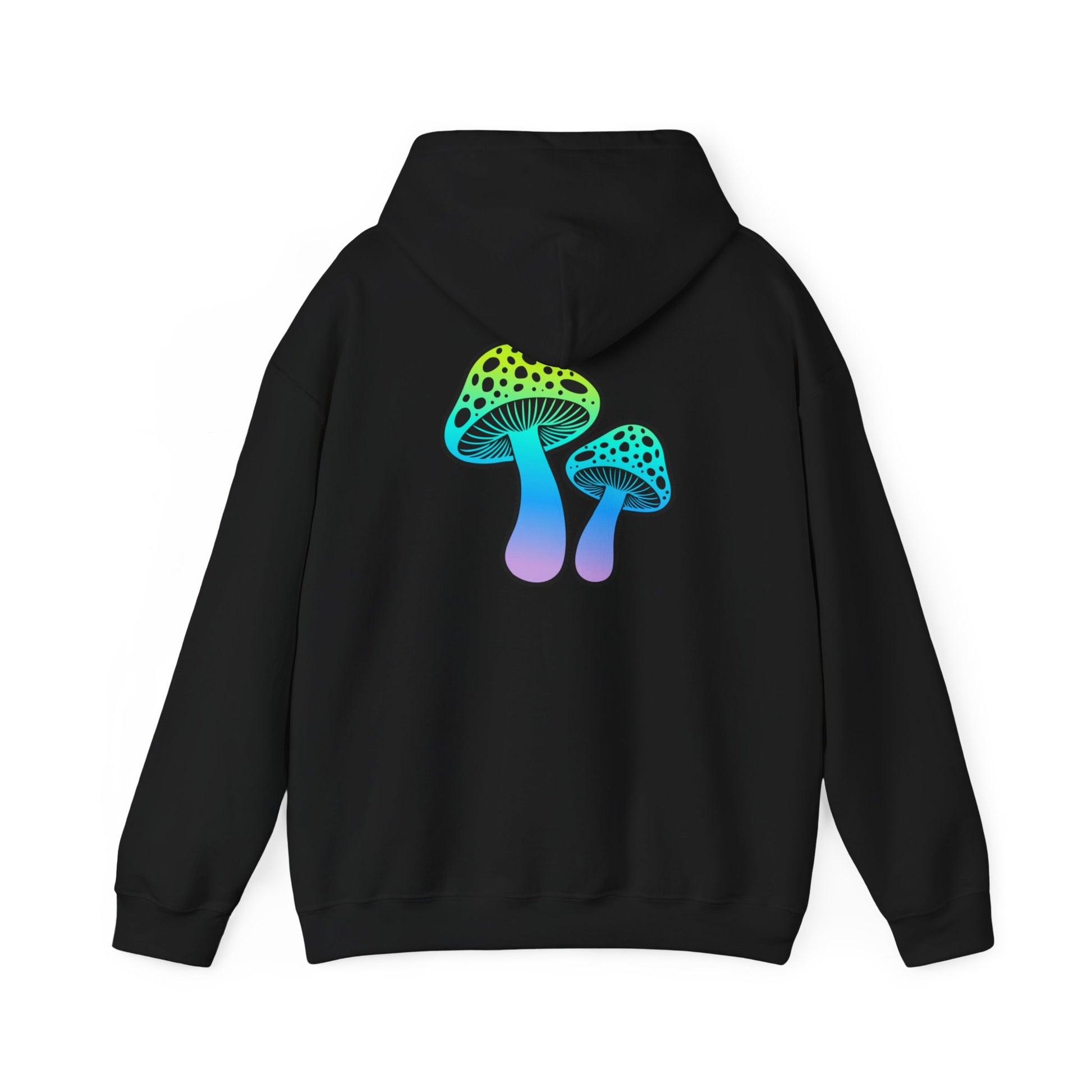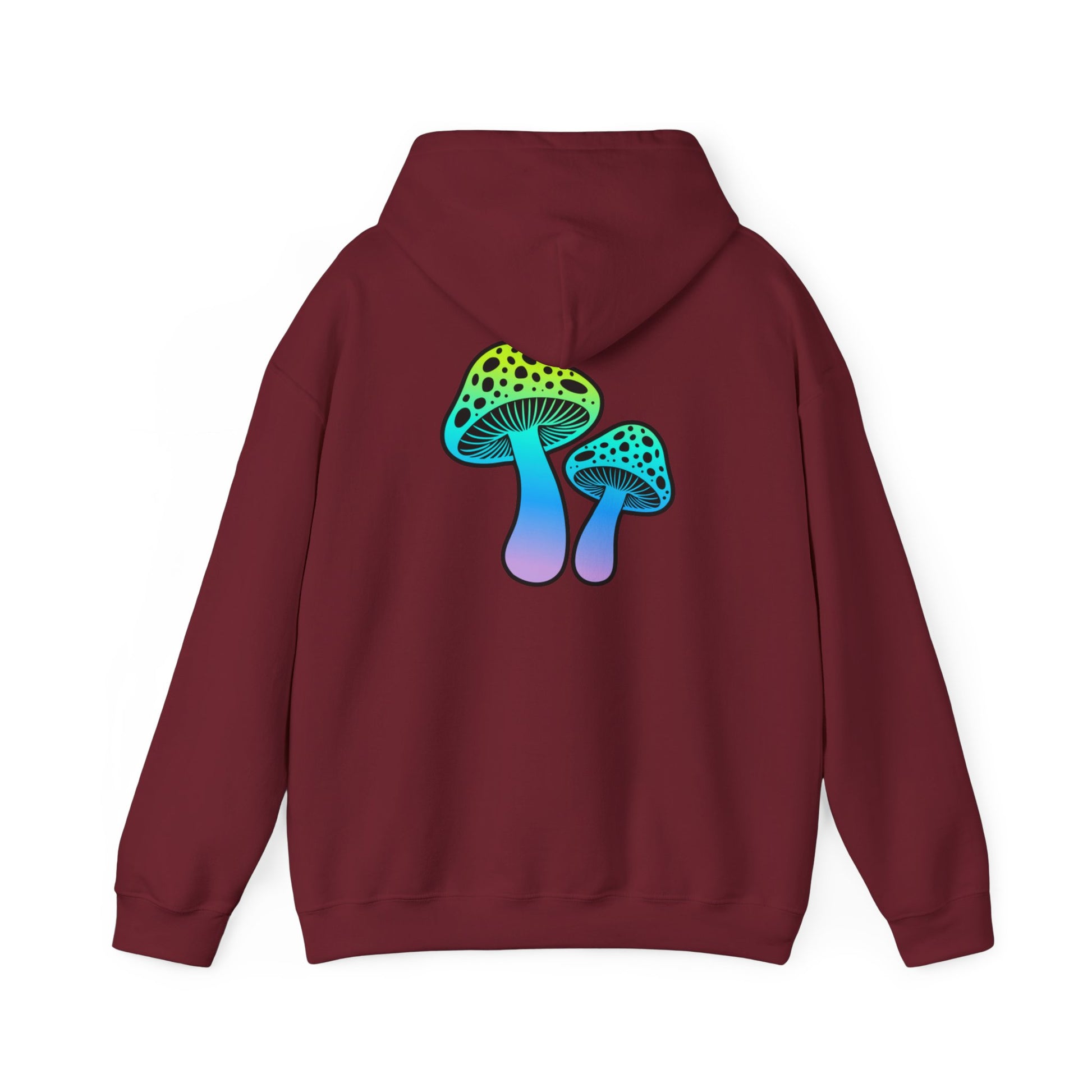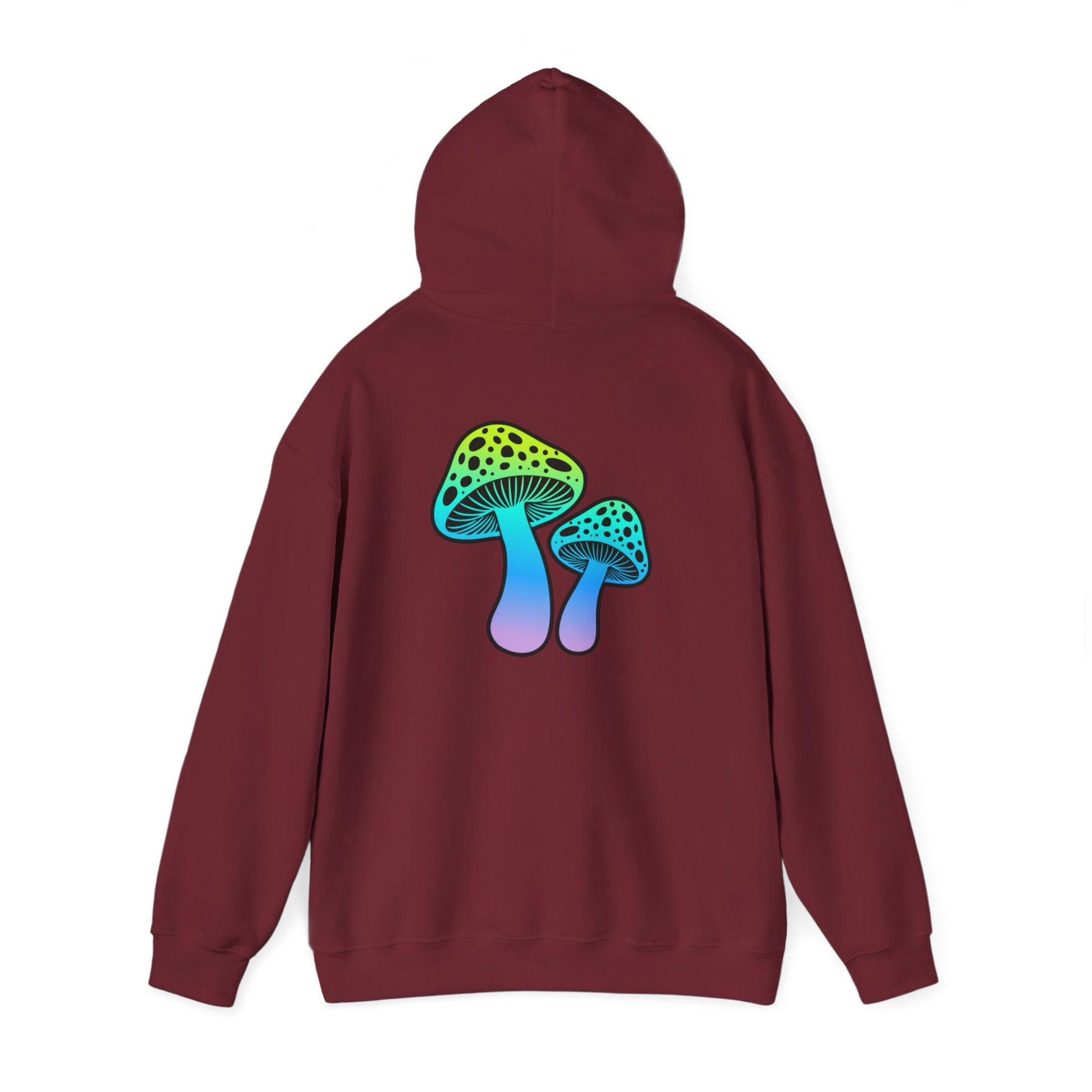 Stay Shroomed and warm in this heavy blend hooded sweatshirt made forrelaxation itself. Made with a thick blend of cotton and polyester, it feels plush, soft and warm, a perfect choice for any cold day. In the front, the spacious kangaroo pocket adds daily practicality while the hood's drawstring is the same color as the base sweater for extra style points.